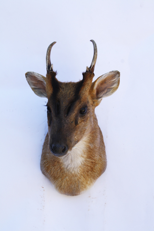 A CAPE & HEAD MOUNT OF A MUNTJAC,