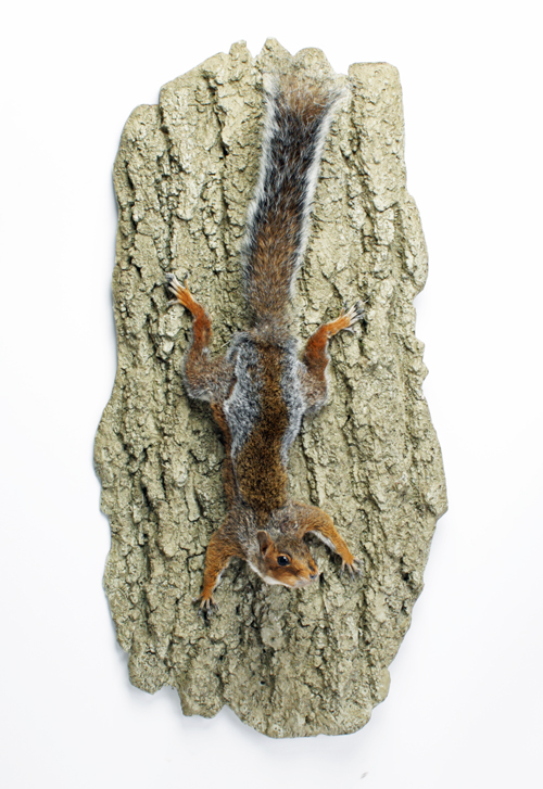 A FULL-MOUNT OF A GREY SQUIRREL, mounted on an imitation tree