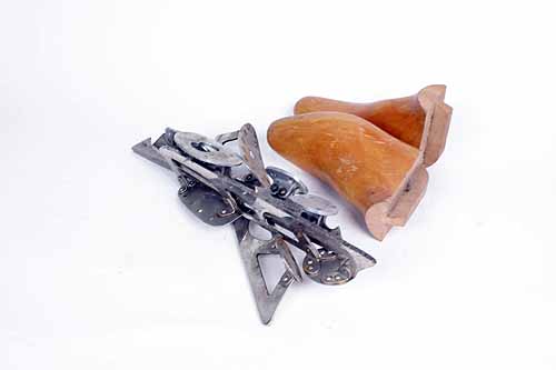 TWO PAIRS OF ICE SKATE BLADES TOGETHER WITH BOOT PARTS,
