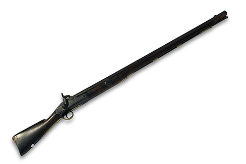 possibly converted from a flintlock rampart gun circa 1800, with extremely heavy round 54 1/2in. barrel possibly for ball, London proofs and a small 'D9' stamped at breech, oversize musket-type lock with large hammer and oversize dome-headed hammer-spindle retaining screw, walnut full-stock swollen where drilled for the iron stirrup pintle-mount (supplied), brass furniture including brass ribbon sideplate joining the two side-nails, brass pipes and possibly associated heavy iron ramrod, overall weight without mount: 35lbs