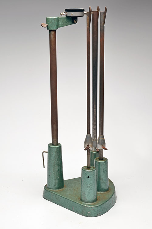 A THREE PRONG WALL THICKNESS GAUGE, for measuring .410, 20-bore, 12-bore, with a 'Mitutoyo' gauge