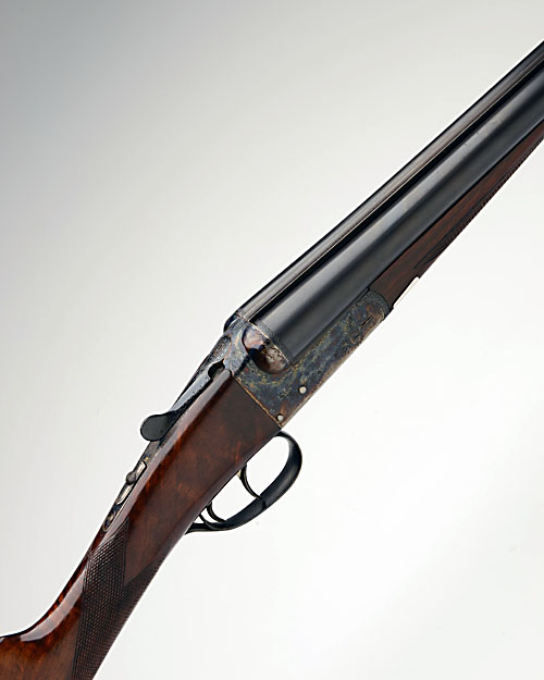 AYA 12-BORE 'NO.4' BOXLOCK EJECTOR, serial no. 294831, 26in. nitro barrels, 2 3/4in. chambers, bored approx. imp. cyl. and 1/2 choke, automatic safety with gold-inlaid 'S' detail, border engraving, retaining virtually full original colour-hardening and finish, 14 1/4in. stock