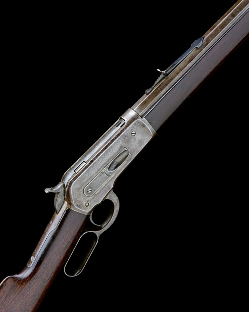 for 1896, with octagonal 26in. barrel, dove-tailed blade fore-sight, replacement buckhorn rear-sight, barrel marked 'MANUFACTURED BY THE WINCHESTER REPEATING ARMS CO, NEW HAVEN CONN. USA', plain receiver, top-tang drilled for peep-sight, walnut straight-hand butt-stock with iron crescent heel-plate, walnut fore-end with iron nose-cap and full-length magazine