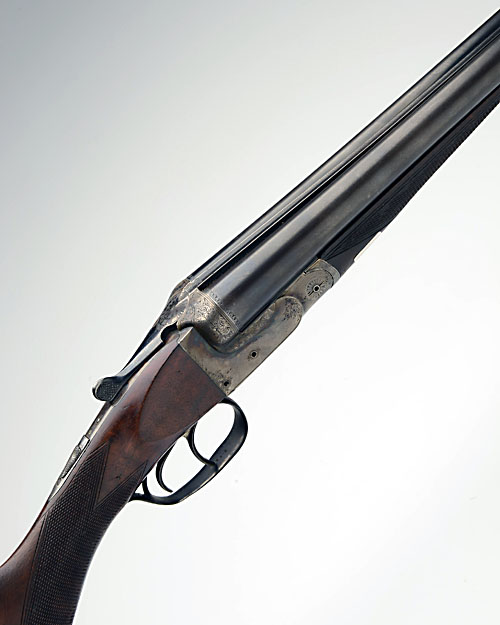 FRENCH 16-BORE BOXLOCK NON-EJECTOR, serial no. 7342, 27in. nitro barrels, 2 1/2in. chambers, bored approx. true cyl. and 1/2 choke, bolstered treble-grip action, manual safety, border engraving, retaining traces of original colour-hardening and finish, 14 1/4in. semi-pistolgrip stock