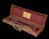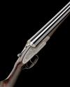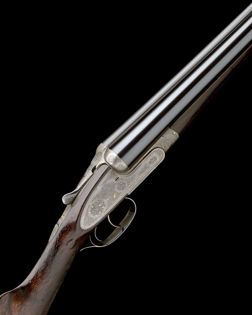 28in. nitro barrels, tubes engraved 'JOSEPH LANG & SON. 7. BURY STREET. ST. JAMES'S. LONDON.', 2 1/2in. chambers, bored approx. true cyl. and 1/4 choke, wall thicknesses below recommended minimum, minor dents, automatic safety with gold-inlaid 'SAFE' detail, gold-inlaid cocking-indicators, best fine floral bouquet and acanthus scroll engraving, retaining some original colour-hardening, 14 1/2in. well-figured stock, weight 6lb. 8oz., in its brass-cornered oak and leather case