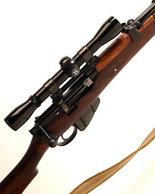 LEE ENFIELD (ISHAPORE) .303 'SH.L.E. III**P' BOLT-MAGAZINE SERVICE RIFLE, serial No. 53486, 25 1/8in. nitro barrel, protected ramp-mounted fore-sight, adjustable V-notch rear-sight, fitted with a 'BUSHNELL BANNER' telescopic sight, manual safety, detachable box magazine, canvas sling, brass butt-plate