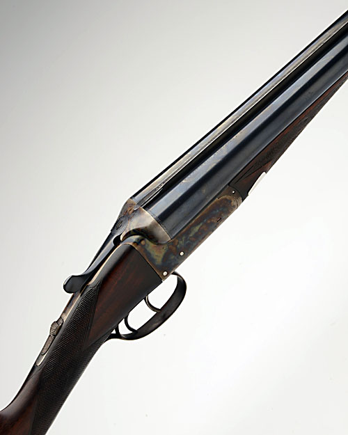 E.J. CHURCHILL 12-BORE 'XXV' BOXLOCK EJECTOR, serial no. 4003, 25in. nitro barrels with Churchill rib inlaid 'XXV', the tubes engraved 'E.J. CHURCHILL (GUNMAKERS) LTD. 39 TO 42 LEICESTER SQUARE. LONDON.', 2 1/2in. chambers, bored approx. 1/4 choke in both, treble-grip action, automatic safety with inlaid 'SAFE' detail, plain action engraved with the makers name, retaining much original colour-hardening and finish, 14 1/2in. stock including 1/4in. extension
