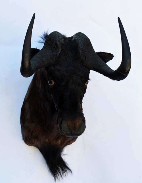 A CAPE & HEAD MOUNT OF A BLACK WILDEBEEST,