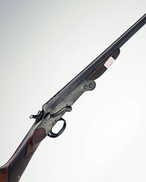 BELGIAN .410 SINGLE-BARRELLED SIDELEVER FOLDING HAMMERGUN, serial no. 6456, 26in. nitro barrel, 2 1/2in. chamber, bored approx. true cyl. 14in. stock