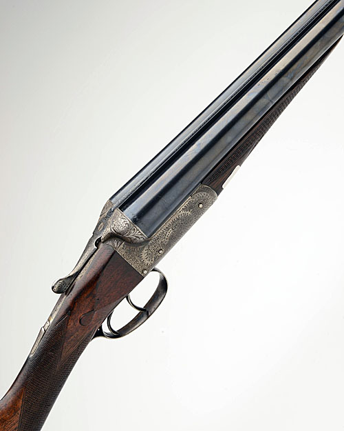 W. R. PAPE 12-BORE BOXLOCK EJECTOR, serial no. 13125, 30in. nitro barrels, rib engraved 'W.R. PAPE. NEWCASTLE-UPON-TYNE. WINNER OF THE LONDON GUN TRIALS IN 1858. 1859. 1866 &1875', 2 1/2in. chambers, bored approx. imp. cyl. and 3/4 choke, treble-grip action, automatic safety with gold-inlaid 'SAFE' detail, fences carved with floral motifs, fine acanthus scroll engraving, retaining slight traces of original colour-hardening, 14 1/4in. stock