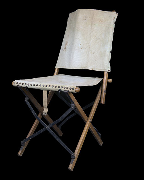 constructed from teak, steel and heavy canvas and of a folding design, formerly the property of the well-known and successful hunter Philip Percival, together with a framed photograph of Percival in the company of Bror Blixen and a further framed image of Percival seated in what appears to be this chair, dated 1930.