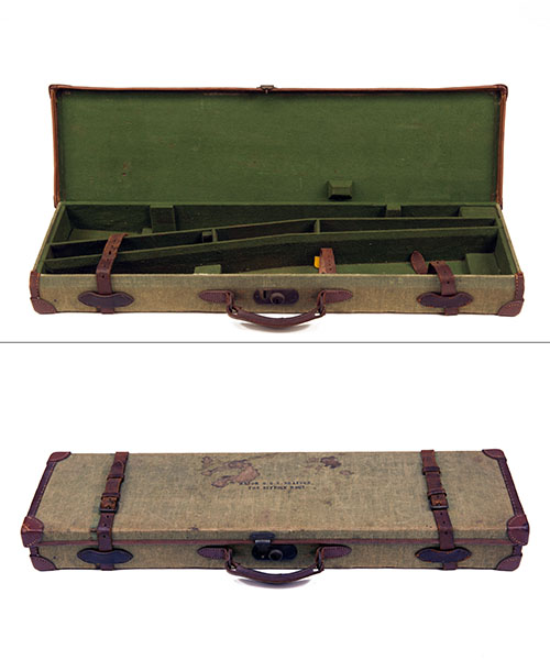 A GREEN CANVAS AND LEATHER TAKE-DOWN RIFLE CASE,