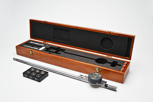 AN UNUSED CHUBB-TYPE BORE-MEASURING GAUGE WITH MITUTOYO DIGITAL MICROMETER,