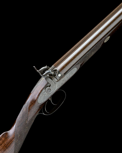 A CASED 12-BORE PERCUSSION DOUBLE-BARRELLED SPORTING-GUN, serial no. 8612,
