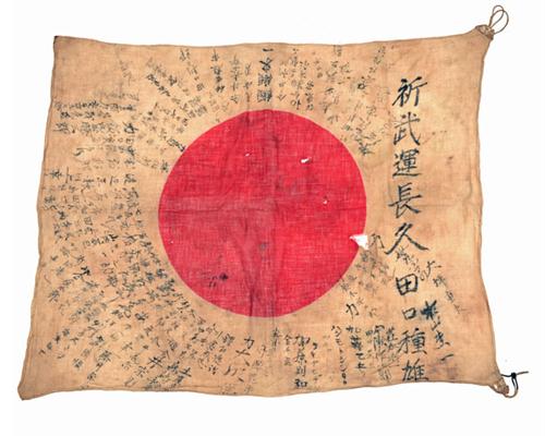 Other Notes: these small silk flags inscribed by friends and family were given to Japanese servicemen about to depart to war, a tradition which reached its peak during World War Two