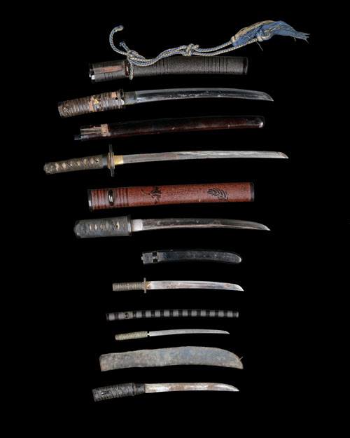 A COLLECTION OF SIX MINIATURE JAPANESE SWORDS AND DAGGERS,