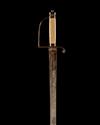 A BRITISH INFANTRY OFFICER'S SWORD WITH 'SPADROON' HILT, UNSIGNED, circa 1780, with straight, single edged spear-point 32in. blade, single full-length fuller to both sides, brass stirrup hilt with turned-down quillion, ribbed ivory grip slightly swelling to the centre and cushion-shaped pommel, no scabbard