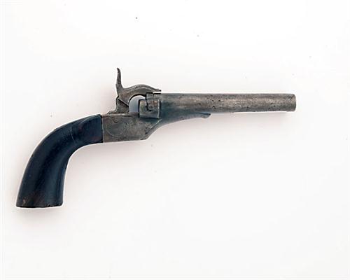 AN UNUSUAL 11mm PINFIRE DOUBLE-BARRELLED PISTOL SIGNED ARRIETA, serial no. 5,