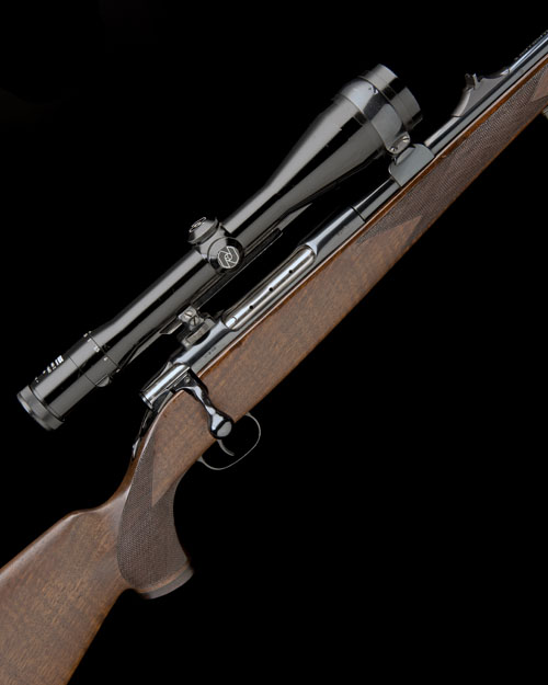 22 1/2in. nitro barrel with ramp-mounted open sights and ramp-mounted blade fore-sight, the receiver mounted with a Zeiss Diavari-Z 2,5...10x52 T* telescopic sight in quickly-detachable mounts, detachable box magazine, set trigger, pistolgrip stock with palm swell, cheekpiece, hogsback comb, sling swivels, 15 1/4in. pull including 1in. ebonite extension and 7/8in. ventilated rubber recoil pad