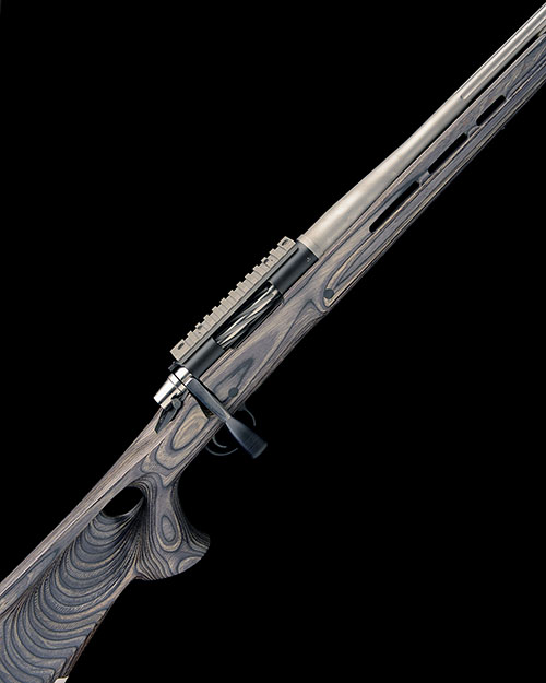 23in. unsighted fluted nitro barrel, threaded for a sound moderator and with protector, receiver mounted with a picatinny rail, hinged floorplate with push button release, sculpted laminate thumbhole pistolgrip stock with cheekpiece, sling eyes, 13 3/4in. pull including rubber recoil pad