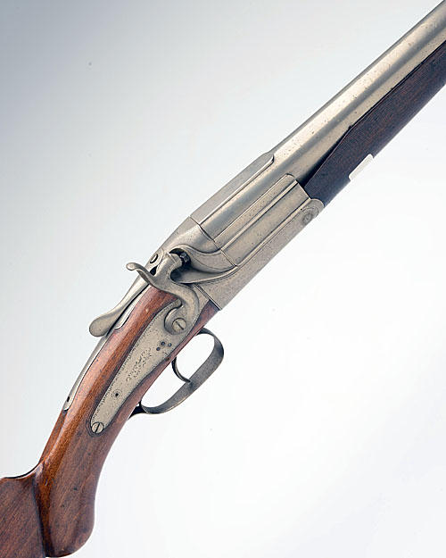 R. ROPER. SON & CO 10-BORE (2 5/8IN.) SINGLE-BARRELLED TOPLEVER HAMMERGUN, n.v.s.n., 32 3/16in. black powder plated barrel, the top flat engraved 'R. ROPER. SON & CO. SHEFFIELD' (indistinct), carved percussion fence, border engraving with the makers name engraved within a banner, 14in. replacement semi-pistolgrip stock, fore-end wood split and chipped, plated finish overall