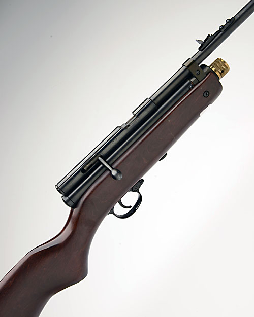A .22 CO2-POWERED AIR-RIFLE SIGNED SMK, MODEL 'XX78', serial no. XX78C02B, with blued, sighted 21 1/2in. barrel, bolt-action receiver, aperture for air-source (not supplied) and plain beech stock, untested