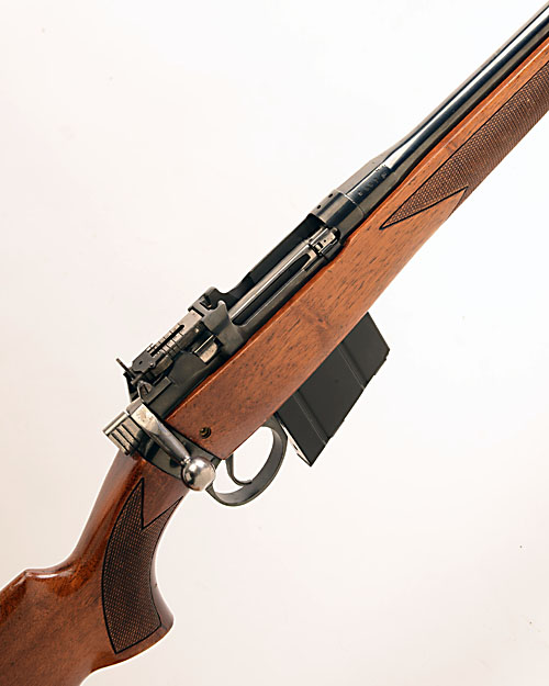 22in. nitro barrel, protected ramp-mounted blade fore-sight, 'MK 3' rear-sight, manual safety, detachable magazine, chequered pistolgrip stock with cheekpiece), chequered fore-end, sling swivels,