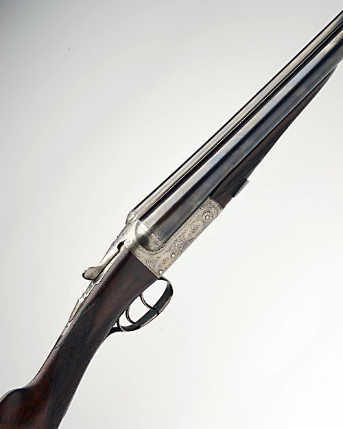 J. HUGHES & SON 12-BORE BOXLOCK NON-EJECTOR, serial no. 4915, 28in. nitro barrels, rib engraved 'J. HUGHES & SON. LONDON & BIRMINGHAM.', 2 1/2in. chambers, bored approx. true cyl. and 3/4 choke, unsigned action, automatic safety, border and floral scroll engraving, bright finish