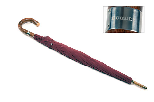 with chestnut handle, wood shaft, maroon microfibre canopy