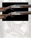 28in. nitro barrels with 7mm ventilated matt top-ribs, gold-inlaid '1' and '2' at the breech ends, 2 3/4in. chambers, bored approx. 1/4 and 1/2 choke, pierced hold-open toplevers gold-inlaid '1' and '2', automatic safeties, non-selective single triggers, finely engraved with acanthus scrollwork and floral bouquets, the sideplates with woodland scenes of woodcock and capercaillie, signed 'Dan Cortini', the undersides with a lone partridge, bright finish overall, 14 7/8in. well-figured semi-pistolgrip stocks, weight 5lb. 11oz., in their leather motor case