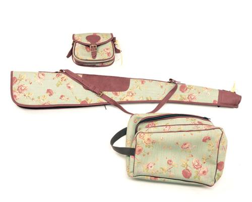 A NEW AND UNUSED CANVAS AND LEATHER SINGLE FLEECE-LINED GUNSLIP WITH MATCHING CARTRIDGE BAG AND BOOT-BAG,