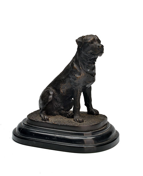 A BRONZE SCULPTURE OF A SITTING ROTTWEILER,