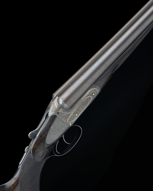 30in. nitro reproved fine damascus barrels, rib with scroll detailing at the breech end and engraved 'W. SUMNERS & SON. 48 OLD HALL STREET. LIVERPOOL.', 2 1/2in. chambers, bored approx. true cyl. and full choke, right wall at 19, treble-grip action with intercepting sears, slender toplever, automatic safety with engraved 'SAFE' plaque, very fine acanthus scroll and floral bouquet engraving, the recessed decorative sideplates with 'W.S.' monogram, retaining traces of original colour-hardening, 14 1/2in. well-figured pistolgrip stock with horn pistolgrip-cap and buttplate, bolstered fore-end wood, weight 6lb. 2oz.