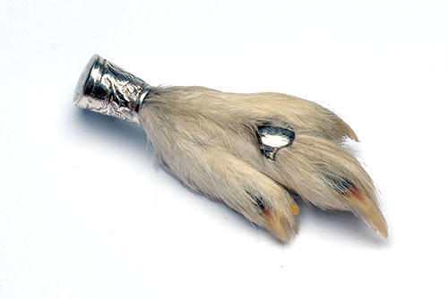 A SILVER MOUNTED LUCKY RABBIT'S FOOT,