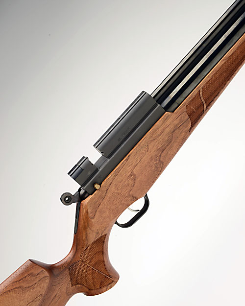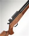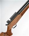 AN FAC-RATED .22 PRE-CHARGED PNEUMATIC REPEATING AIR-RIFLE SIGNED DUK IL ARMS CO., MODEL 'HUNTING MASTER AR6', serial no. DL1855778, with 26 1/2in. floating barrel with moderator adaptor, anodised receiver with external hammer and aperture for rotary magazine (missing), blued air reservoir and chequered walnut half-stock