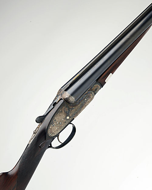 AYA 12-BORE 'MODEL 25' SINGLE-TRIGGER HAND-DETACHABLE SIDELOCK EJECTOR, serial no. 534432, 25in. nitro barrels with Churchill rib gold-inlaid with the makers name, 2 3/4in. chambers, bored approx. imp. cyl. and 1/4 choke, hand-detachable sidelocks, removable striker discs, automatic safety, gold-inlaid cocking indicators, retaining much original colour-hardening and finish, 14 3/8in. stock (left underhorn pinned)