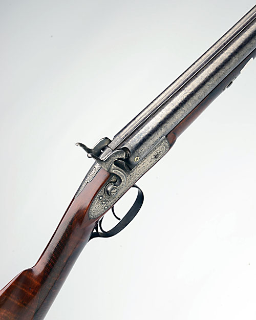 AN 11-BORE PERCUSSION DOUBLE-BARRELLED SPORTING-GUN SIGNED MURCOTT, no visible serial number,