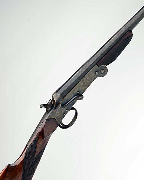BELGIAN .410 SINGLE-BARRELLED SIDELEVER FOLDING HAMMERGUN serial no. 6356, 26 1/8in. nitro barrel (pitted), 2 1/2in. chamber, plain action retaining some original colour hardening and finish, 13 7/8in. stock