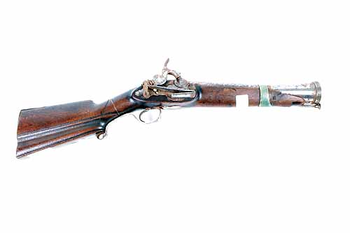 A 28-BORE PERCUSSION IRON-BARRELLED BLUNDERBUSS BREAST-PISTOL, UNSIGNED, no visible serial number,