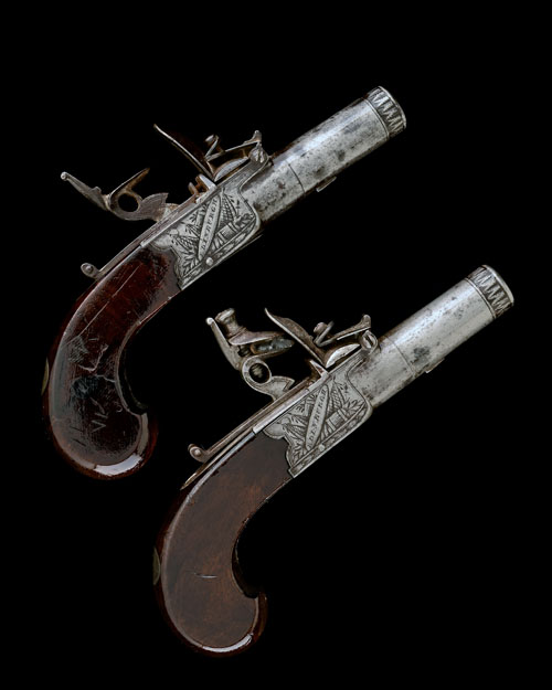 THOMSON, EDINBURGH A PAIR OF 40-BORE FLINTLOCK BOXLOCK POCKET-PISTOLS, no visible serial number,