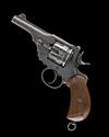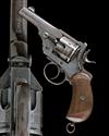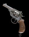 circa 1891, with 4in. barrel, crescent fore-sight, coin-release fluted cylinder with narrow locking notches, break-open frame with automatic ejection, chequered wood birds-head grips, humped back-strap, lanyard ring to heel, original faded finish retaining good 'two-tone' effect to frame