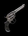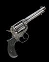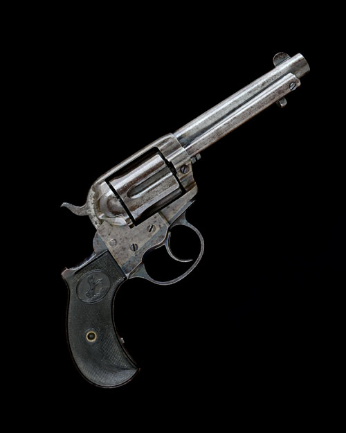for 1886, with blued 4in. barrel signed 'COLT'S PT FA MFG CO HARTFORD, CT, USA' on two lines, crescent fore-sight, sighting groove to the top-strap, blued fluted cylinder, colour-hardened frame, blued trigger-guard and grip-straps, chequered hard-rubber birdshead grips, the whole retaining a good amount of original finish and colour