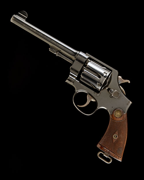 circa 1915, with blued 6 1/2in. barrel, blued fluted swing-out cylinder, blued solid frame and chequered walnut grips, much original finish remaining