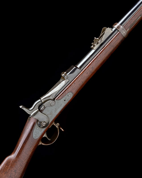 with 32 1/2in. blued barrel with blade fore-sight, Buffington rear-sight, hinged breech-block engraved 'US MODEL1884', plain flat lock signed 'SPRINGFIELD US', plain hammer, walnut full-stock, iron furniture including heel-plate, much finish remaining