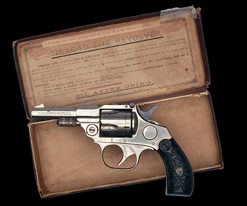 circa 1885, model 'Metropolitan Police', with octagonal 3in. barrel, the left side of barrel marked 'MALTBY, CURTISS & CO, NEW YORK, USA, PAT'D APR 23 78, AUG 28 83, FEB 26 84', model designation to top-flat, fluted cylinder, solid frame, florally embossed hard-rubber grips, the whole retaining virtually all its original nickel-plate, TOGETHER WITH its manufacturers card carton, pasted label at one end and printed instructions to inside of lid (small losses and taped repair)