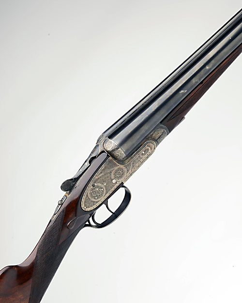 AYA 12-BORE 'MODEL NO.1' HAND-DETACHABLE SIDELOCK EJECTOR, serial no. 527922, 26in. nitro barrels, 2 3/4in. chambers, bored approx. true cyl. in both, hand detachable sidelocks, removable striker discs, automatic safety, articulated front trigger, rolled-edge triggerguard, 15 1/4in. stock (smashed through at hand) including 1in. extension