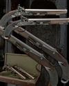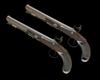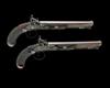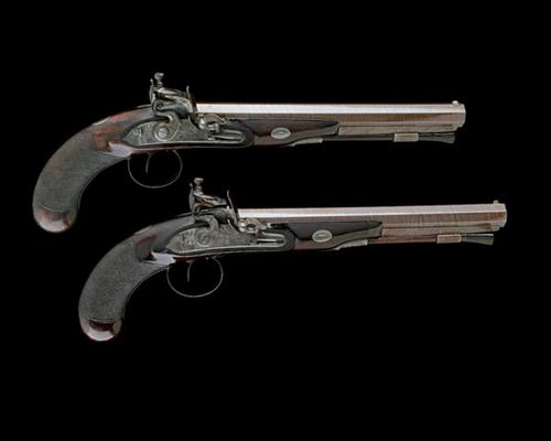 A CASED PAIR OF 25-BORE FLINTLOCK DUELLING-PISTOLS, no visible serial numbers,