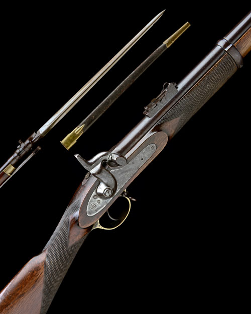 A .577 PERCUSSION SINGLE-SHOT SERVICE RIFLE, MODEL 'PAT. 1856 VOLUNTEER', no visible serial number, with bayonet,