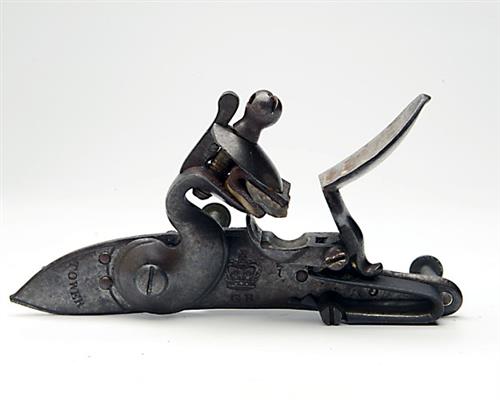 A GOOD DETACHED LOCK FROM A BROWN BESS MUSKET SIGNED TOWER, no visible serial number,