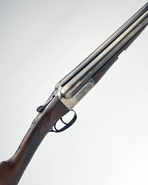 WEBLEY & SCOTT 12-BORE BOXLOCK EJECTOR, serial no. 124459, 26in. nitro barrels (pitted), 2 1/2in. chambers, bored approx. 1/4 and 1/2 choke, automatic safety, automatic safety, border and acanthus scroll engraving, bright finish, 14 1/4in. stock (worn) including 1in. ventilated rubber recoil pad